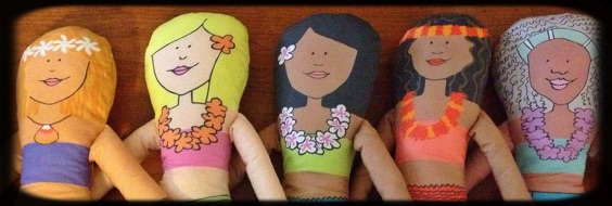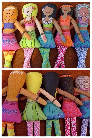 Aloha Sisters 18” and 36” fabric dolls